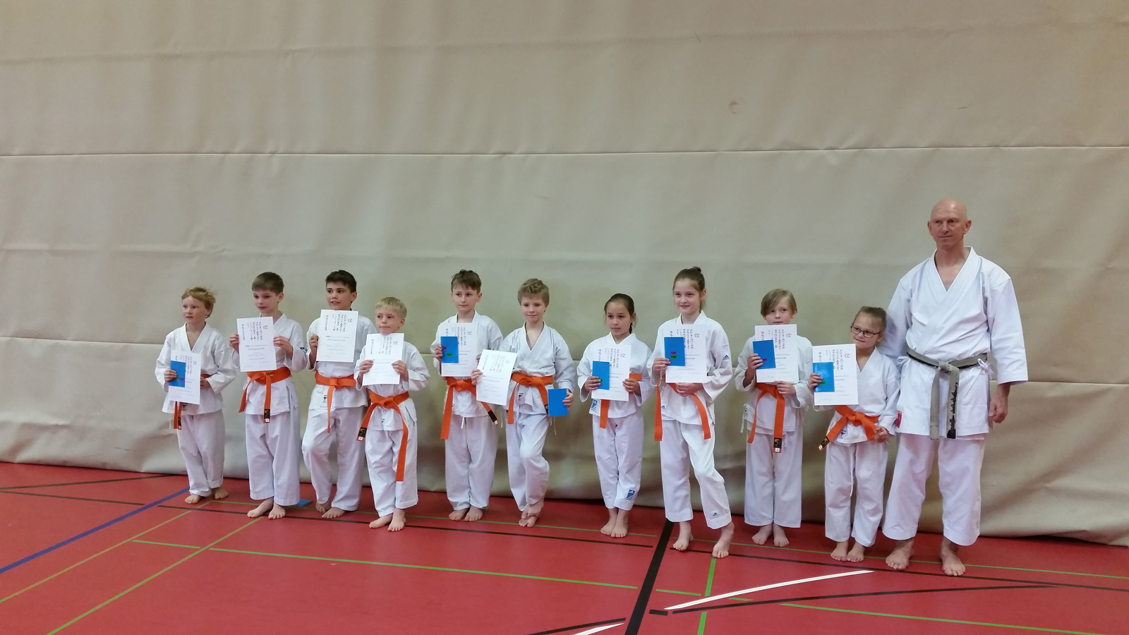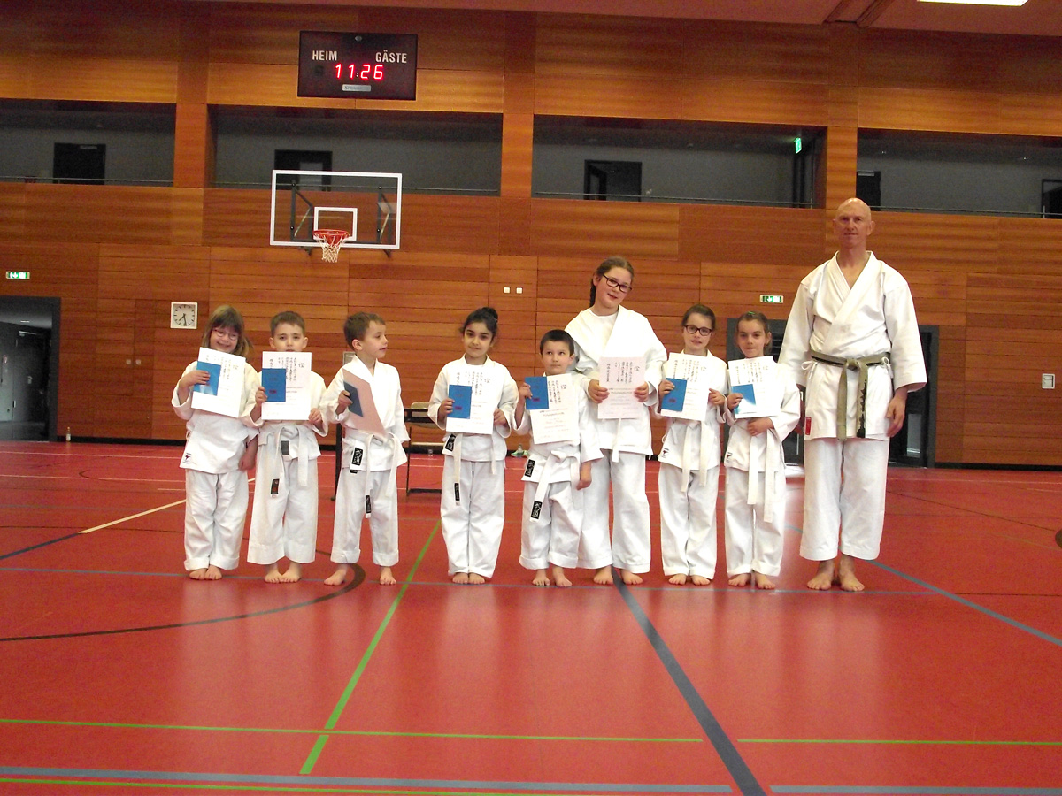 Nach einem ein bzw. eineinhalb stündigen Lehrgang bekamen die Prüflinge die Gelegenheit ihr Können unter den fachkundigen Augen der Prüfer Guido Kratzer und Manfred Schmoigl unter Beweis zu stellen. Das Prüfungsprogramm beinhaltete Teile aus den Bereichen Kihon, Kata und Kumite.